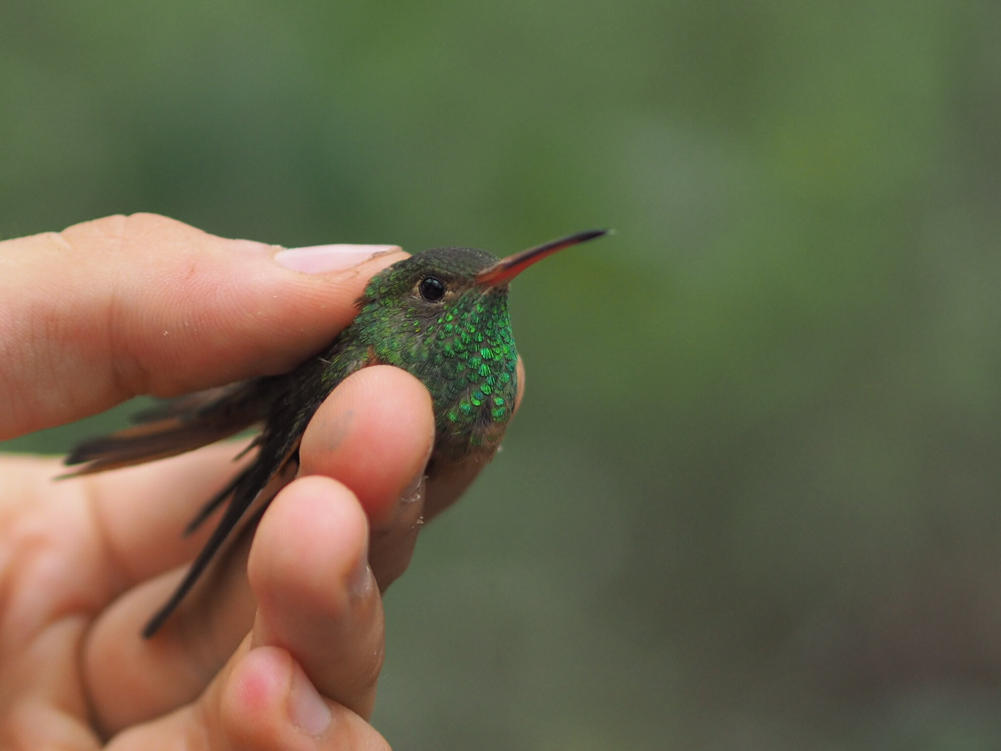 Opwall ornithologists marking a Lesson's motmot (Momotus lessonii) in case of recapture © Alex Chege