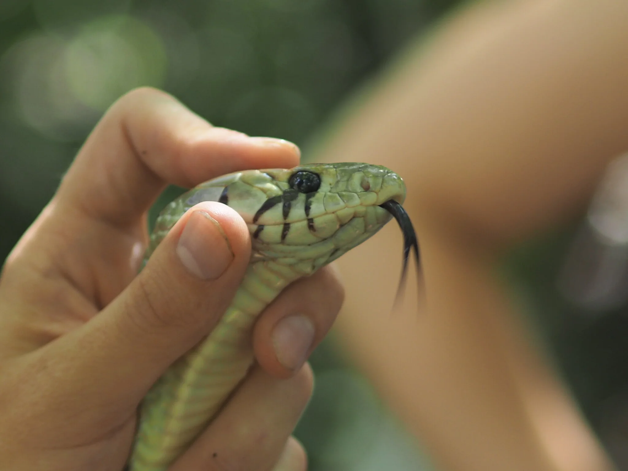 A Central American Indigo Snake (Drymarchon melanurus) captured, measured and released during our last herpetological survey at KM20 campsite, Calakmul © Alex Chege