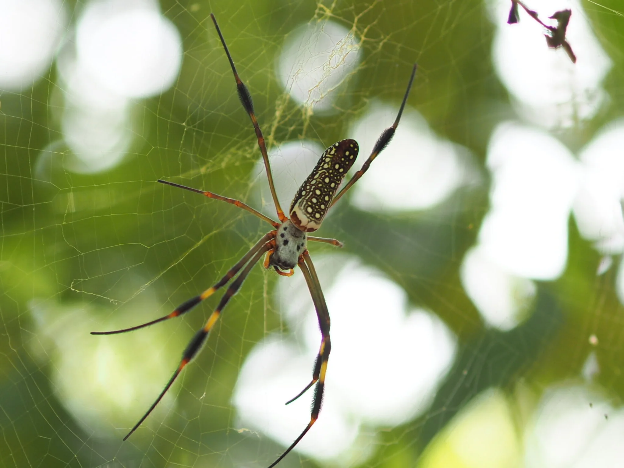 A female Golden silk orb-weaver (Trichonephila clavipes), she was surrounded by three smaller-sized satellite males off camera. © Alex Chege